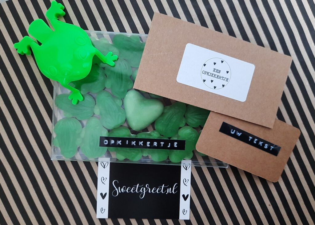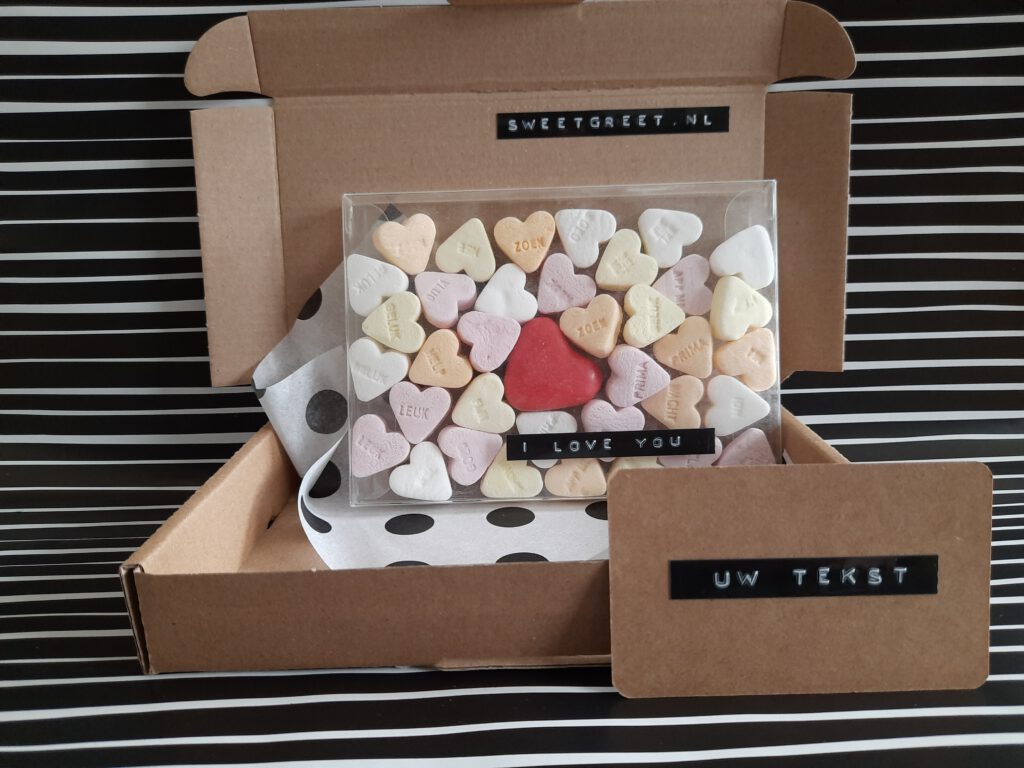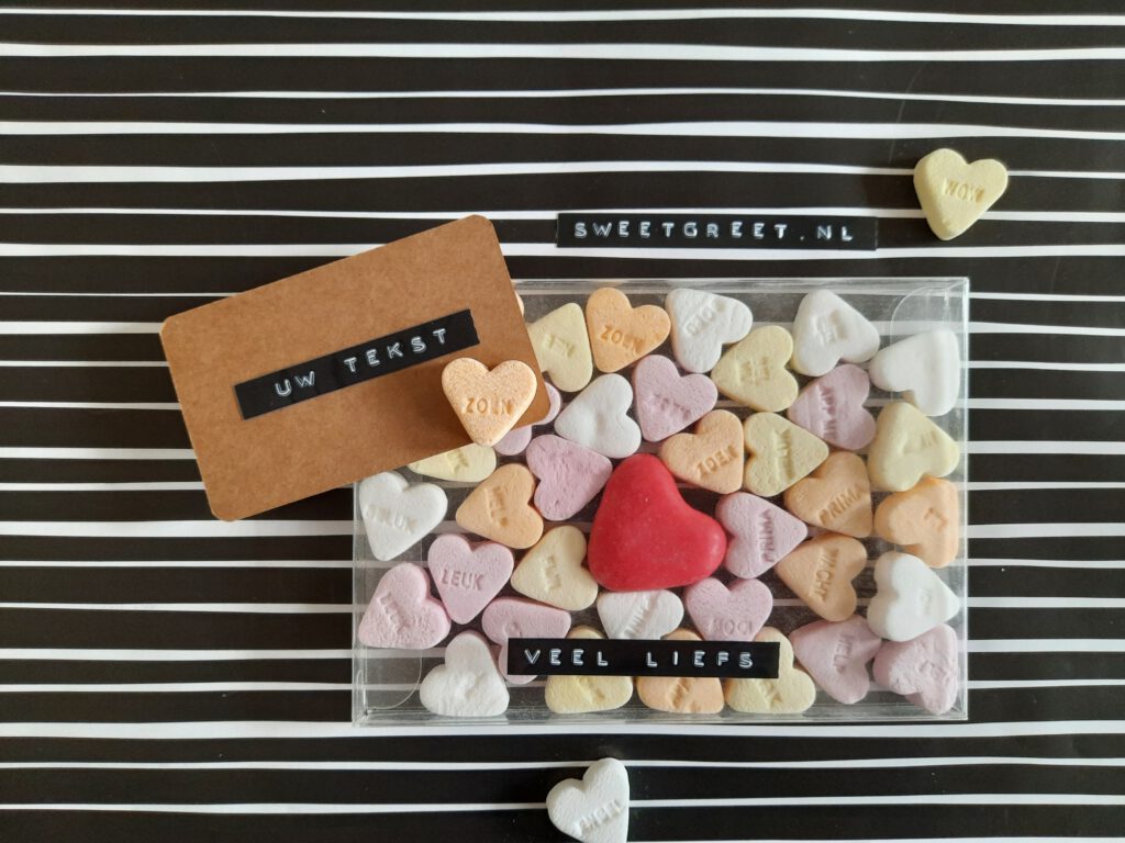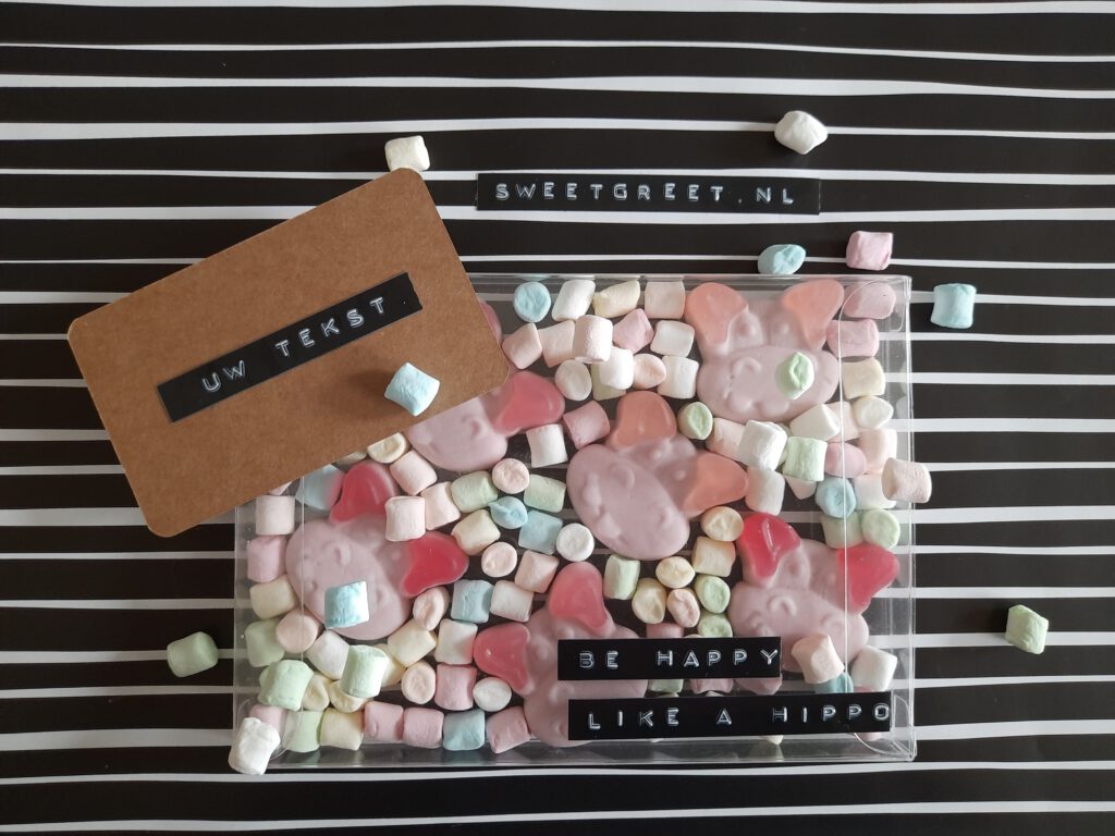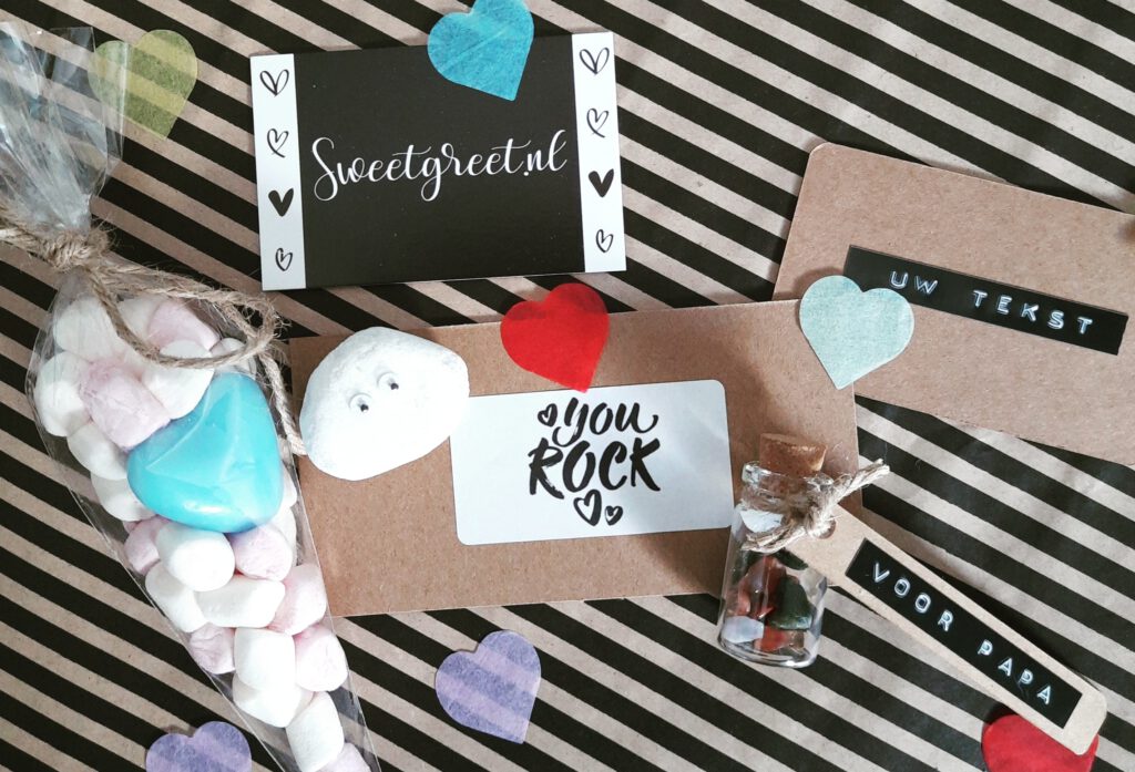 Een snoepgroet is inclusief een persoonlijke tekst op een kaartje. U kunt een bestelling plaatsen via het contactformulier of via info@sweetgreet.nl