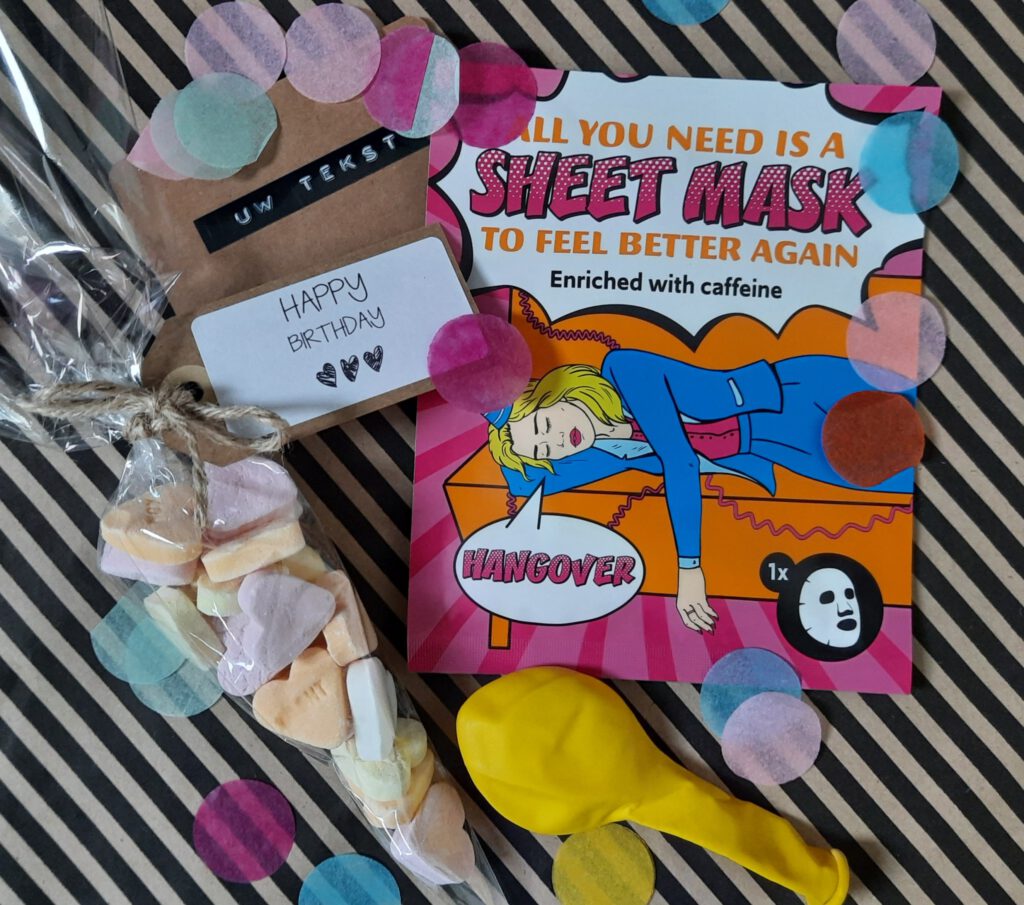 Happy Bday – Snoephartjes, gezichtsmasker, ballon (willekeurige kleur) – Euro 6,95 (excl. verzendkosten)